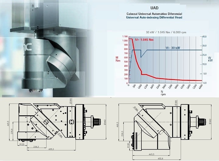 Cabezal automático diferencial integrado (UAD) con 6.000 r.p.m. y giros cada 0,02º